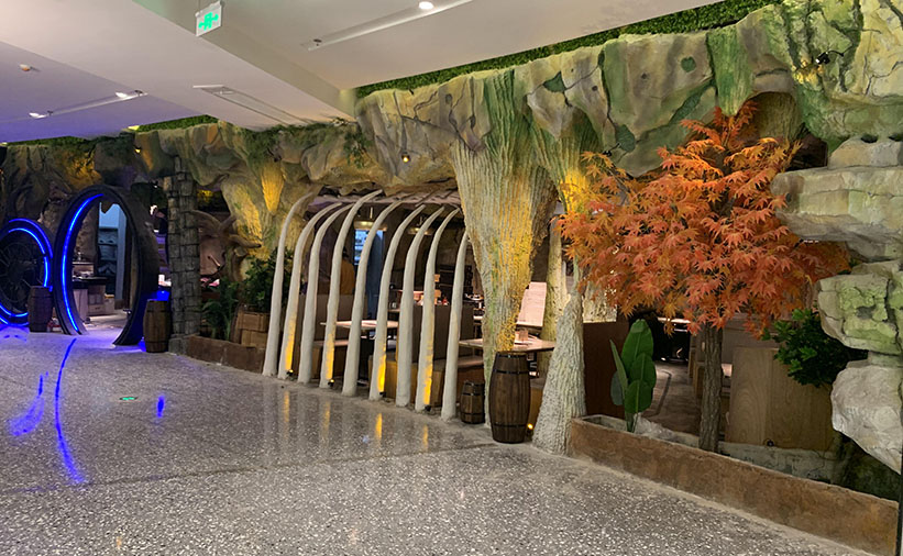南京游樂(lè)園水泥直塑假山假樹(shù)施工完工